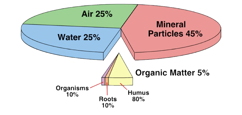 Soil should be an interface between the atmosphere and the earth. 25% air and 25% water and 50% soil, microbes, plant material and humus. By achieving this structure, plants and soil life will thrive and be able to access all that is needed for survival.